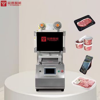Yüksek performanslı gıda paketi MAP tepsi yapıştırma makinesi üreticileri harita ile pnömatik operasyon